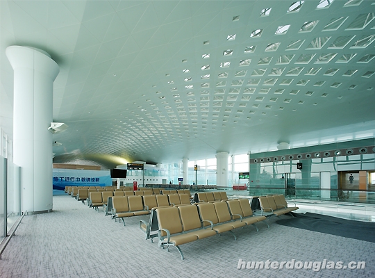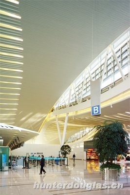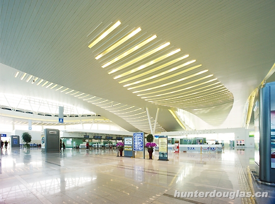 杭州蕭山國際機場的室內設計力求呈現出杭州的歷史文化精髓,同時體現杭州現代時尚的都市面貌。新航站樓出發層的吊頂設計以杭州絲綢為靈感,組合應用樂思龍® 180B 條形板和特製弧型垂片,柔美的曲線配合燈光的映射凸顯出清新流暢、秀美典雅的江南風韻。弧形垂片的設置和韻律還預示了入境大堂空間內的聚集點和出入口,為機場旅客提供了方向引導。(撰稿/莫旭娟,供圖/黃臻)